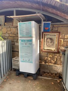 Es la nevera solidaria. Oberta 24 hores, 7 dies a la setmana, es a dir, sempre. La idea és que tothom agafi el que necessiti, a vegades passa algu i arramba amb tot, pero que hi farem! La iniciativa s’ho val.